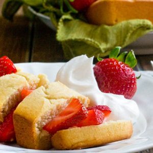 ~You can make a cute little bite-sized dessert outta’ these, that might be perfect for Spring holiday snacking. Slice a few of the loaves 1/4 inch thick, and top with a dollop of cream and a sliced strawberry. Now you’ve got a great little sweet that’s easy to grab.