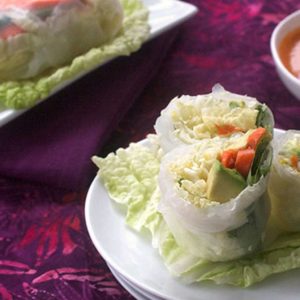 I am Vietnamese, and I can say this is at least recognizable. We call them spring rolls in my family, but that may be different for others. We’ve never used avocado as an ingredient–it might be awesome–but typical fillings are rice noodle, shredded carrot, cucumber, Thai basil or mint, cilantro, lettuce, and some kind of seasoned protein. I usually make sesame-crusted tofu or a more basic marinade of soy sauce and sugar (or other sweetener) for fried tofu or tempeh.