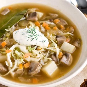 I just finished making this soup, and it did not disappoint! The flavours are very unique and i’m glad I tried something “different.” The way the quartered mushrooms float at the top reminds me of an Asian pot, but the flavours and aromas filling the kitchen are very European. The sauerkraut and caraway remind me of when my grandmother made cabbage rolls and Finnish caraway rye bread; so familiar and comforting. Delicious broth, and very hearty. A super-healthy, hearty autumn/winter meal, and a wonderful soup for an immunity boost!