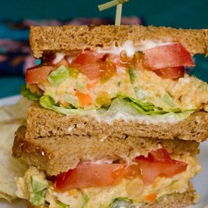 Mix in the mayo and give a few more mashes. Mix in the carrot, celery and onion flakes. Add salt and pepper to taste. Assemble into sandwiches, toasted or not, and serve sliced in half.